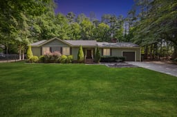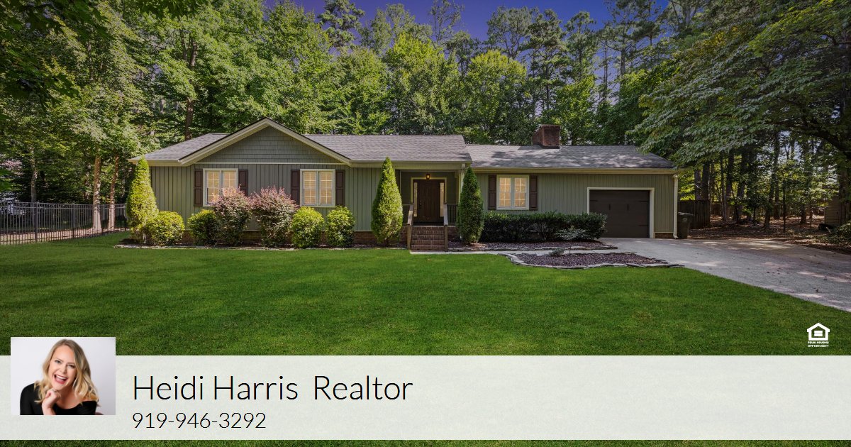 This ranch style home is located in a tree lined neighborhood, just like in a Hallmark movie. At the end of a cul-de-sac, the house sits on a pie shaped lot for maximum backyard space. Inside you’ll see a large family room with wooden vaulted ceilings that make an elegant statement. The wood burning fireplace with a brick face and custom mantle warms the room. The kitchen is updated with stainless steel appliances and marble countertops. There’s enough space in the kitchen to add an island, if you wish. Three bedrooms with ceiling fans are down the hall, and the primary has a beautiful view of the serene backyard. The garage has a fantastic workshop for your next project. The backyard is truly a show stopper and so hard to find in North Raleigh. The wooded and fenced-in yard makes the perfect backdrop for entertaining on the hardtop pergola covered deck.